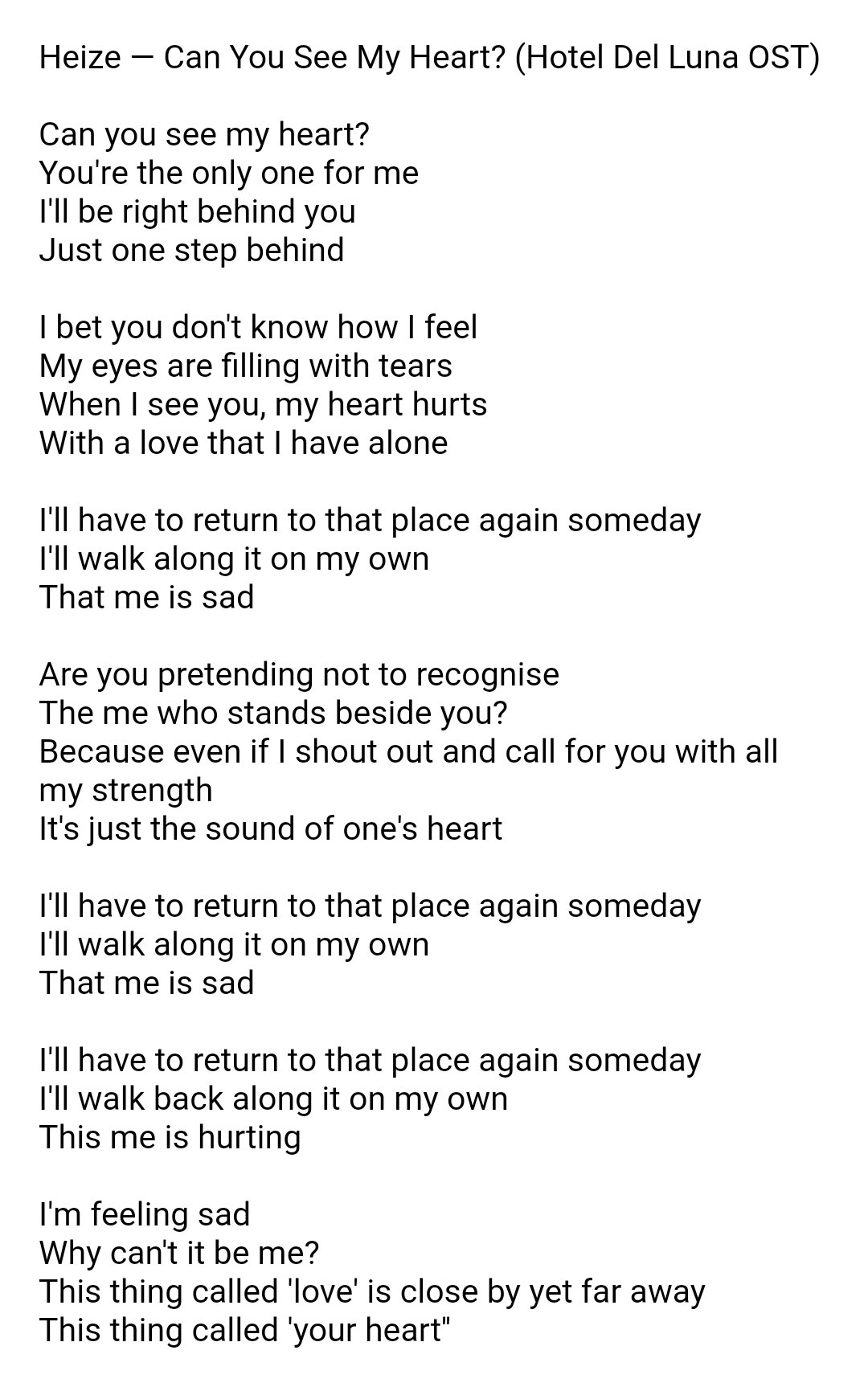 A S Translations On Twitter Heize Can You See My Heart Hotel Del Luna Ost English Lyrics Https T Co Qoroxo6qcg Twitter